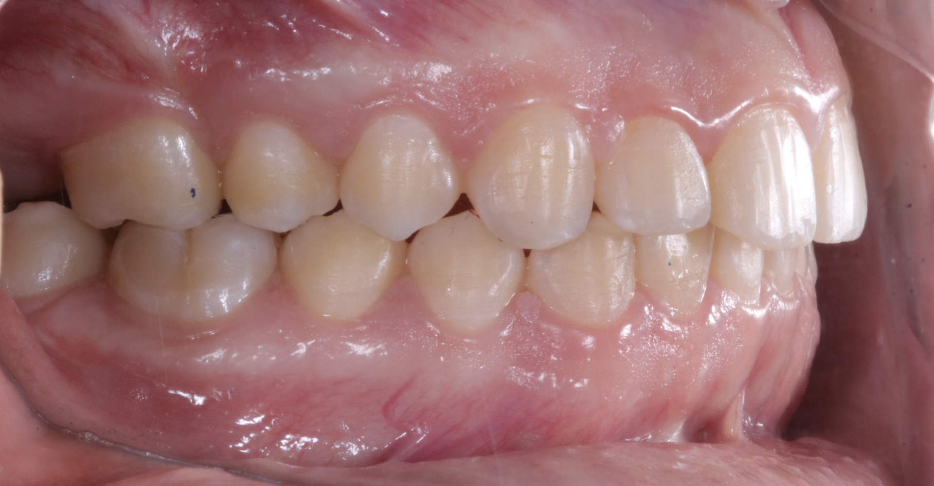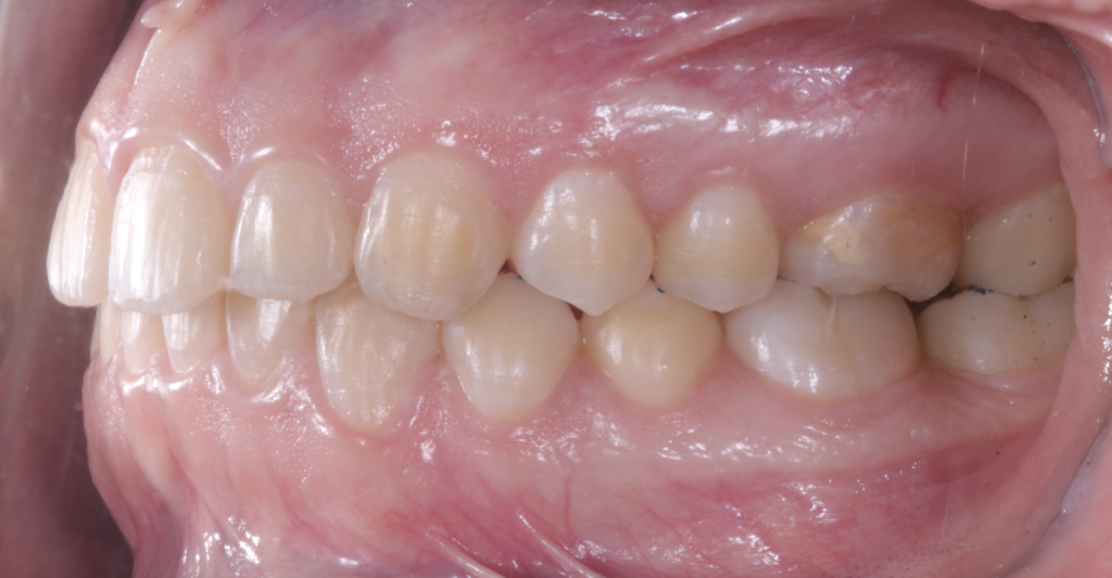 La paciente acudió a consulta por mala posición dental. Se observó maloclusión clase II, líneas medias desviadas y mordida cruzada posterior unilateral izquierda. El caso se llevó sin extracciones, logrando una oclusión clase I, líneas medias centradas y correcta relación molar transversal.